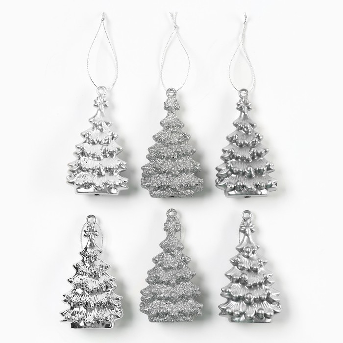 Ёлочные игрушки новогодние «Новый год: Ёлочки», цвет серебристый