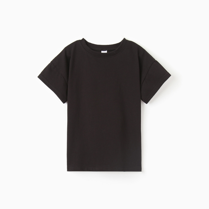 Футболка детская со спущенным плечом, цвет чёрный, рост 134 см