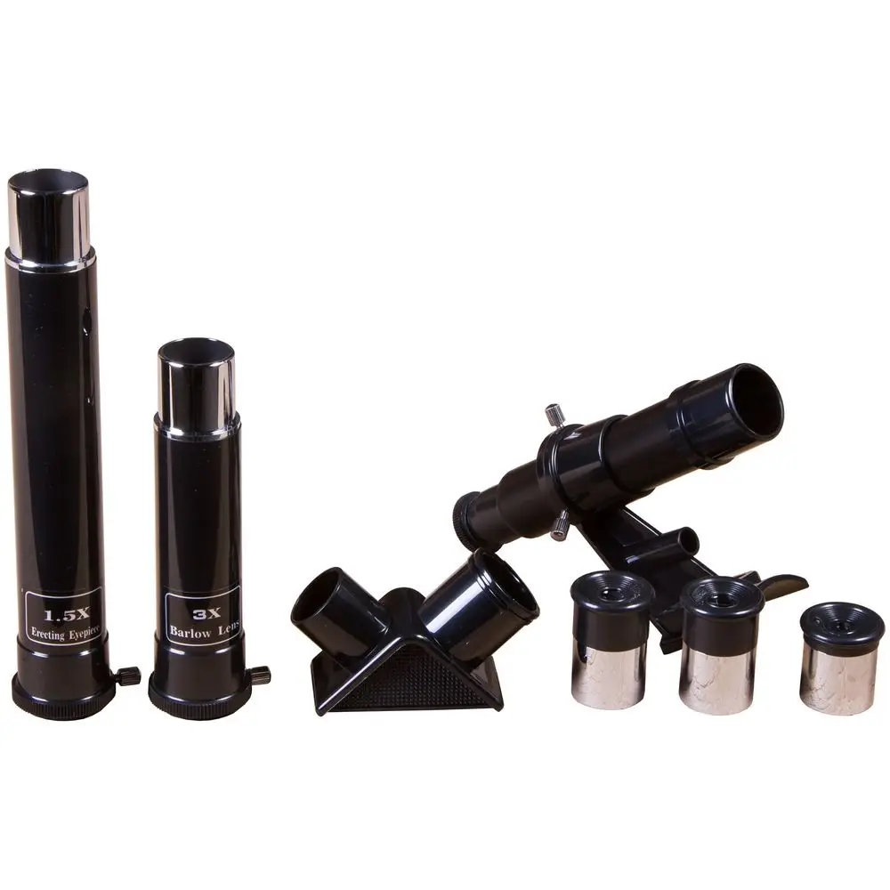 - В комплекте окуляры: 4 мм (150х), 12,5 мм (48х), 20 мм (30х), оборачивающий 1,5х; линза Барлоу 3х
