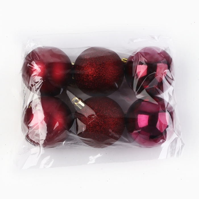 Шары ёлочные новогодние, на Новый год, d=6 см, 6 шт., цвет винный