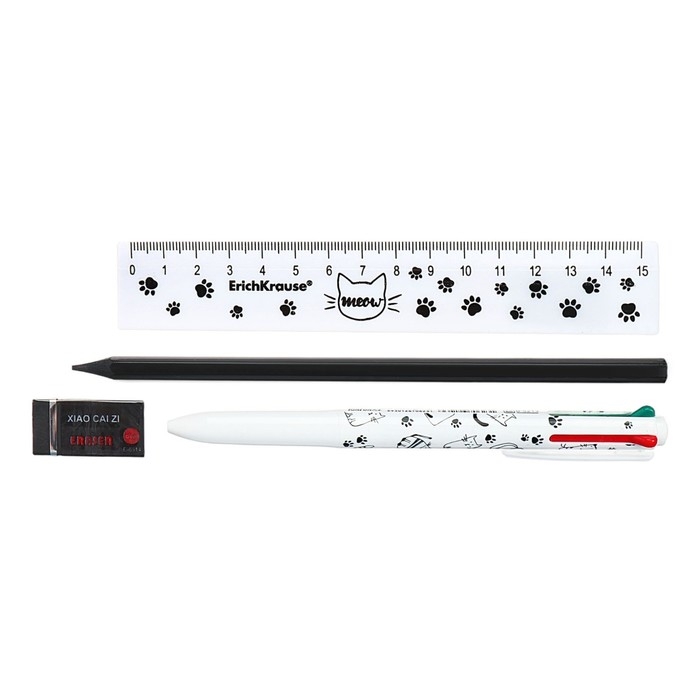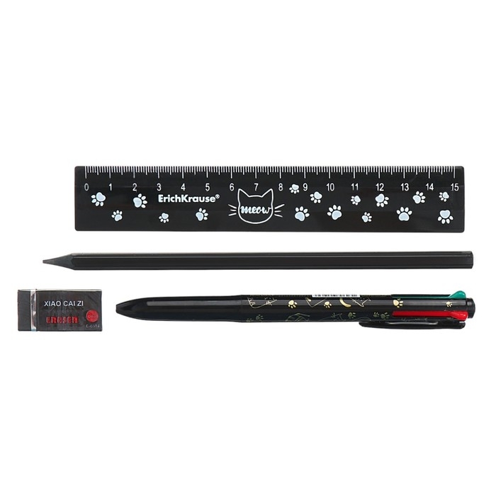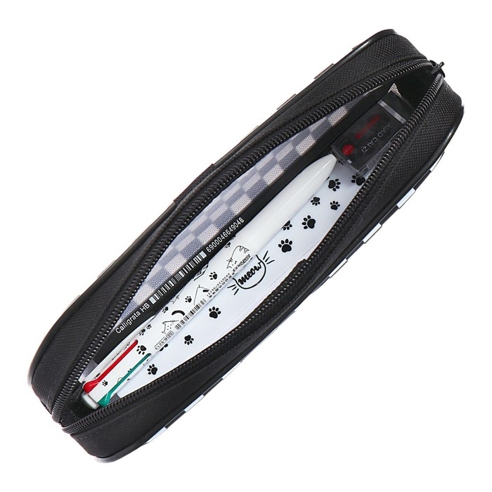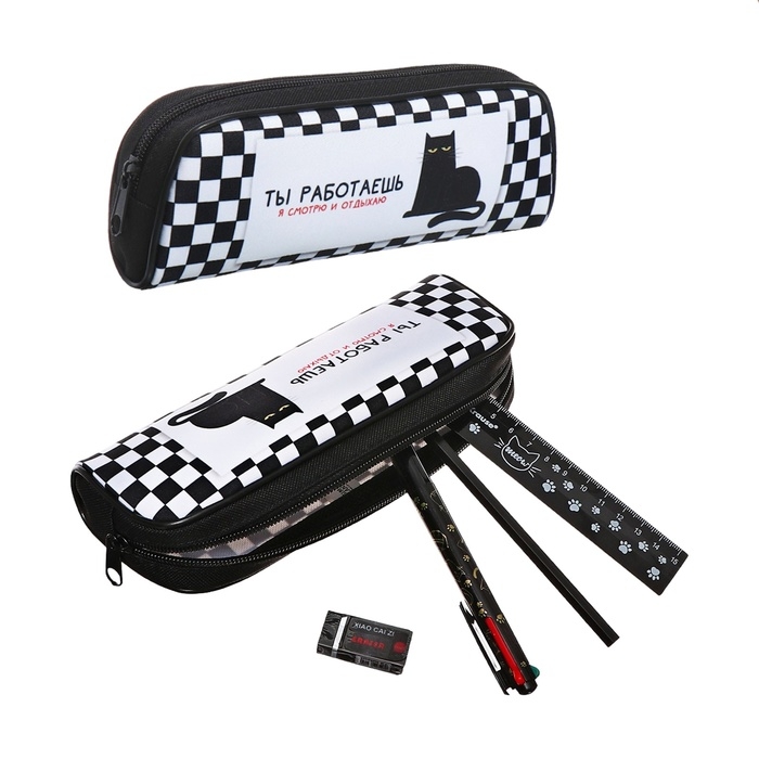 Пенал мягкий 1 отделение, 210 x 80 x 40 мм, Calligrata, с наполнением 4 предмета, универсальный, "Кот"