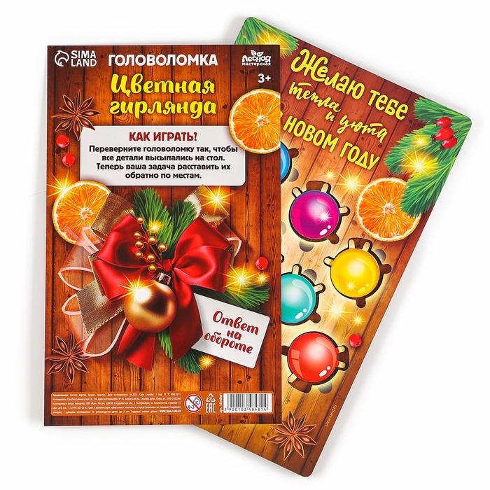 Новогодняя деревянная головоломка для детей «Новый год! Цветная гирлянда», 21 х 15 см