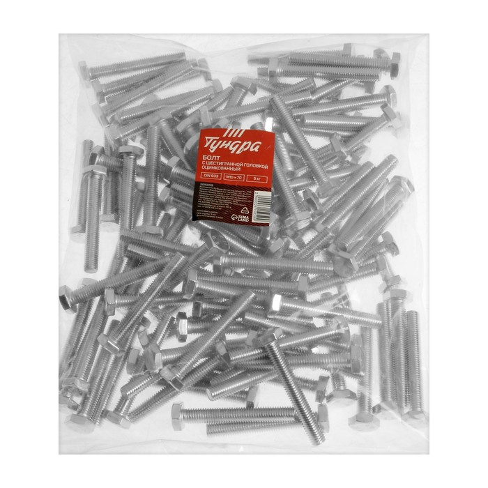 Болт ТУНДРА, оцинкованный, DIN 933, класс прочности 8.8, М10х70 мм, 5 кг