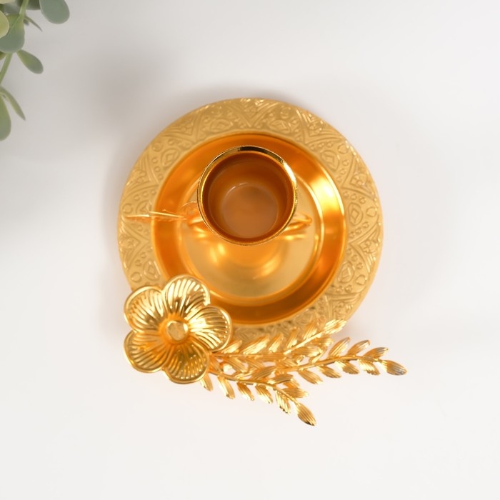 Подсвечник металл на 1 свечу "Бабочка на кольце" золото d=2,5 см 10х11х7 см