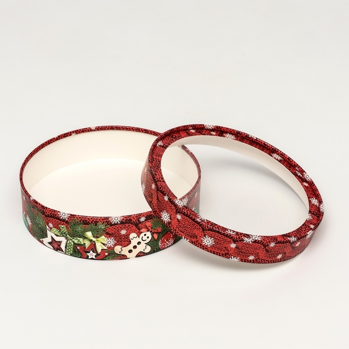 Коробка подарочная новогодняя для макарун тубус с окном "Вязанка", 20 х 6 см. Новый год