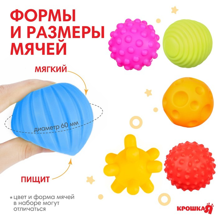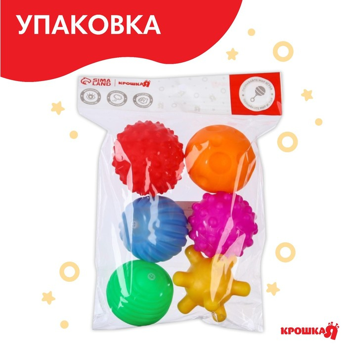 Набор развивающих тактильных мячиков «Космос», с пищалкой, 6 шт, виды МИКС, Крошка Я