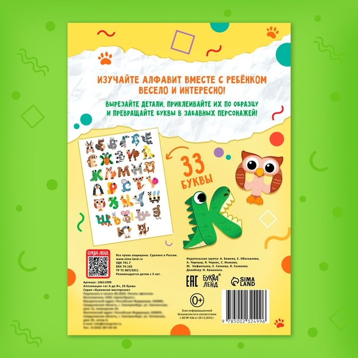 Аппликации «от А до Я», 33 буквы