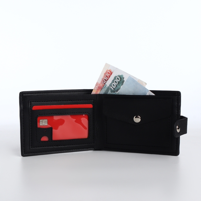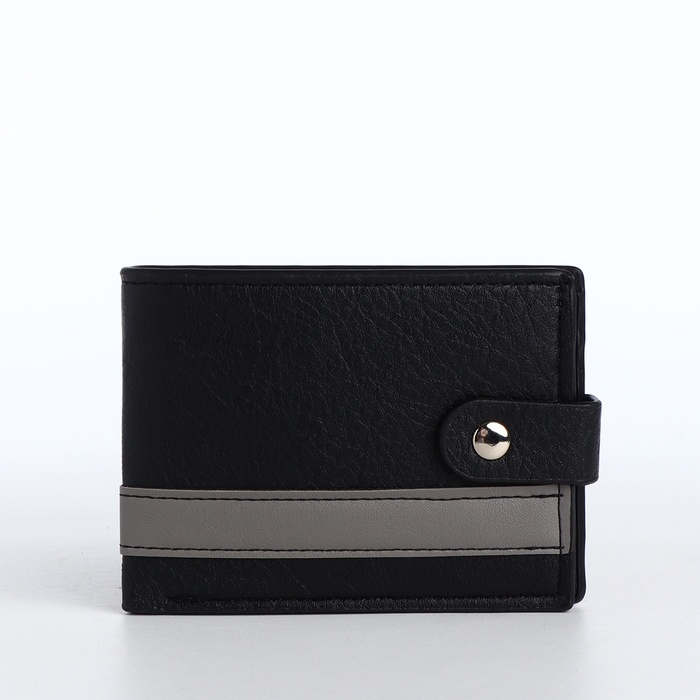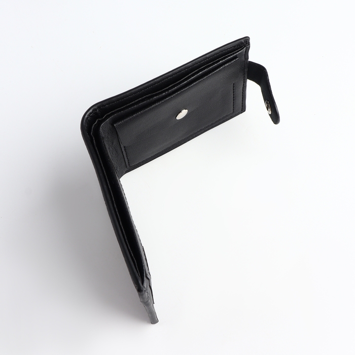 Портмоне мужское на кнопке, отдел для карт, монет, цвет чёрный