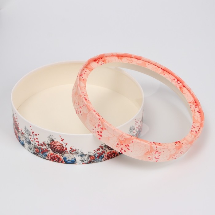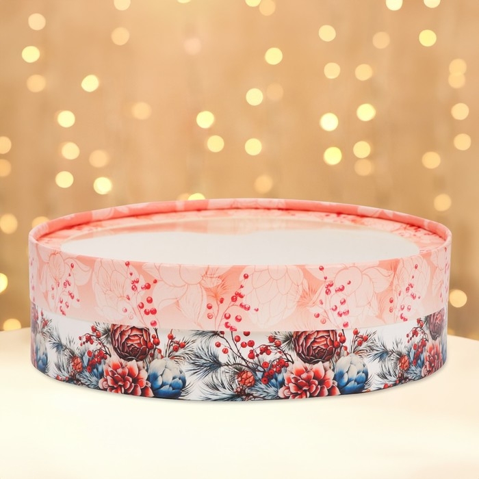 Коробка подарочная новогодняя для макарун тубус с окном "Шишки", 20 х 6 см. Новый год