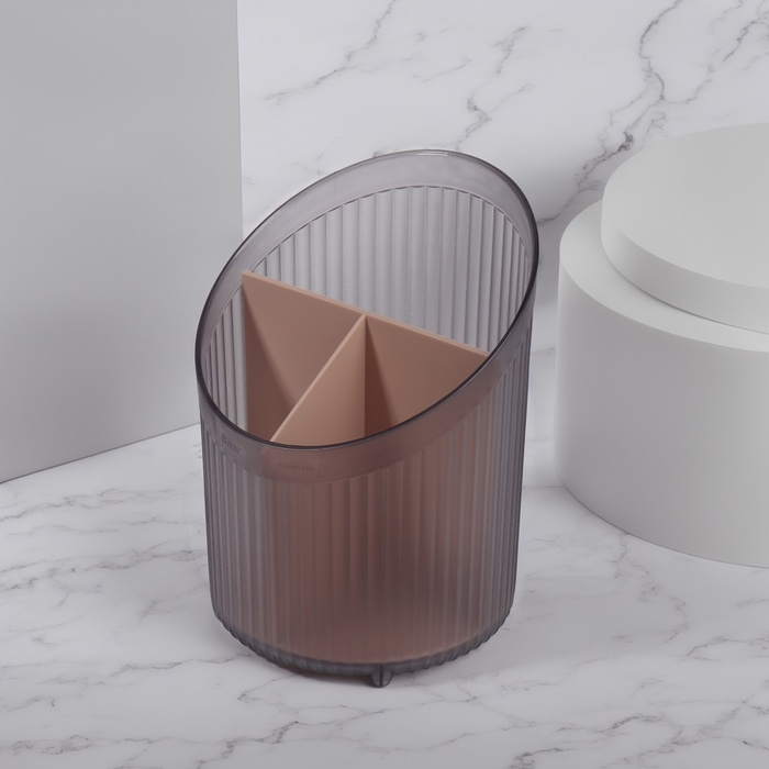 Органайзер предназначен для практичного хранения косметических принадлежностей, хозяйственных мелочей и аксессуаров. Использование органайзера обеспечит порядок на столе и компактное размещение всего необходимого в одном месте. Органайзер идеально подойдет для домашнего использования. Благодаря современному минималистичному дизайну, он удачно впишется в интерьер любой комнаты. За счет прочного материала, контейнер будет прост в уходе и прослужит очень долго.
