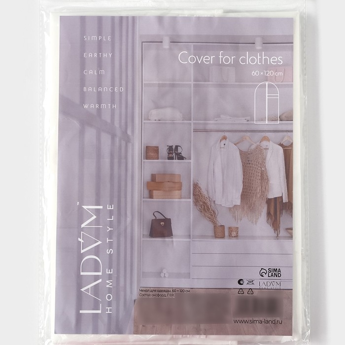 Чехол для одежды LaDо́m, ПВХ окно, плотный, 60×120 см, цвет белый