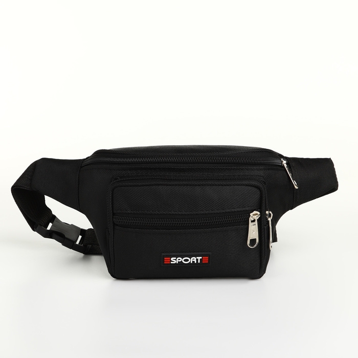 Сумка поясная на молнии, 3 наружных кармана, цвет чёрный