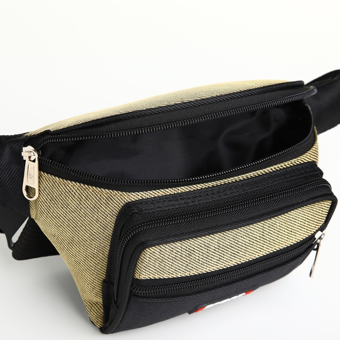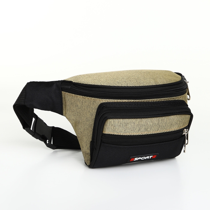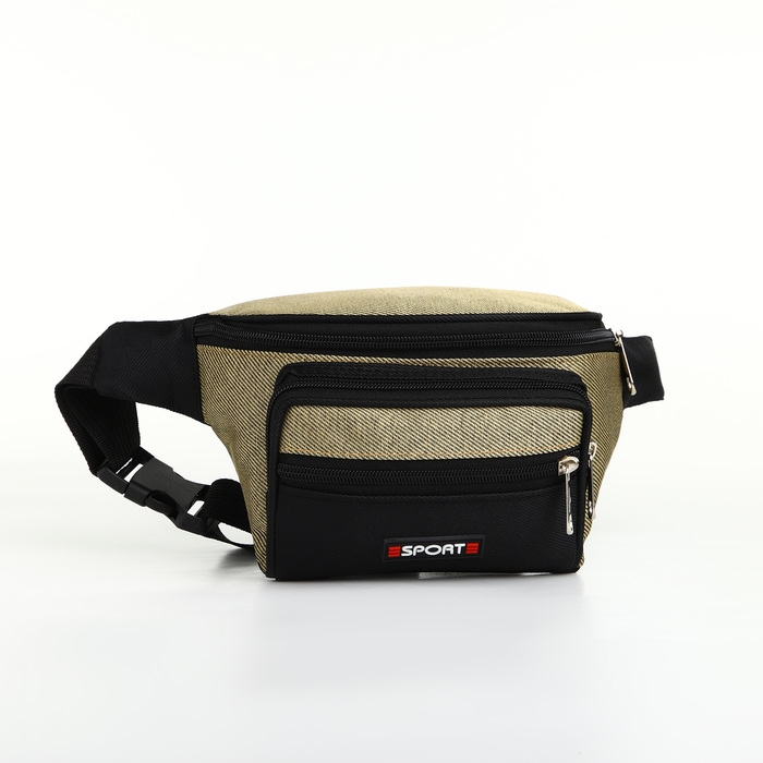 Сумка поясная на молнии, 3 наружных кармана, цвет бежевый/чёрный