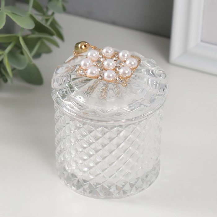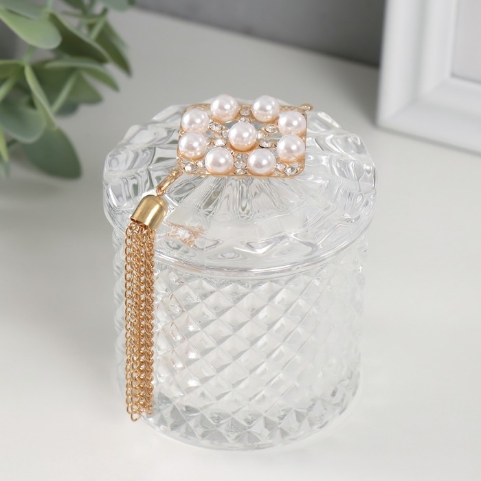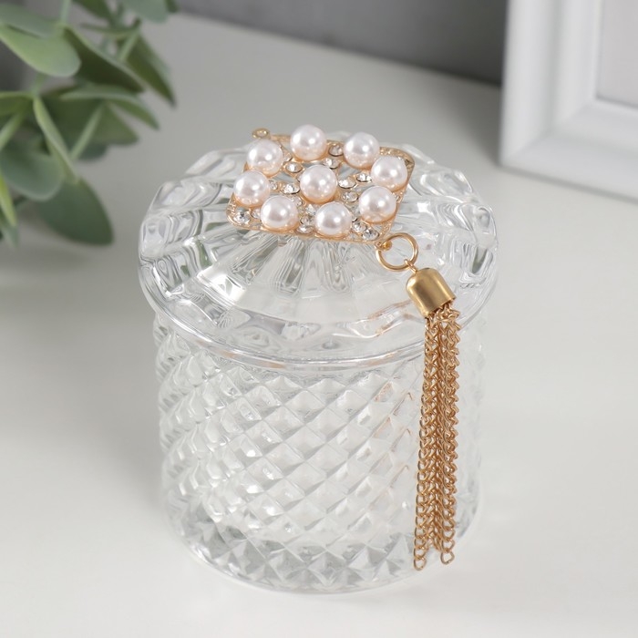 Шкатулка стекло "Ромб жемчужный" с кисточкой 6,6х6,5х7,8 см