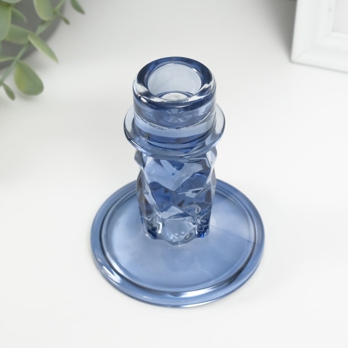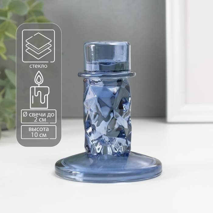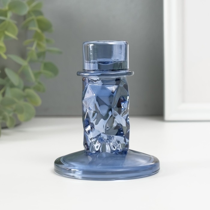 Подсвечник стекло на 1 свечу "Лёд" синий d=2 см 8х8х10 см