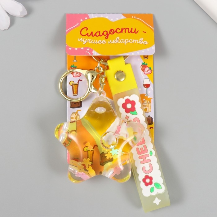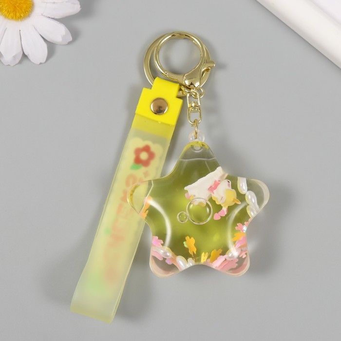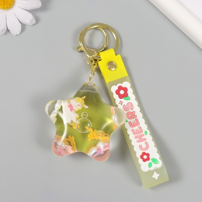 Брелок пластик с карабином, ремешком "Единорожка в звезде" водный, с декором 5,5х5,5х2,5 см