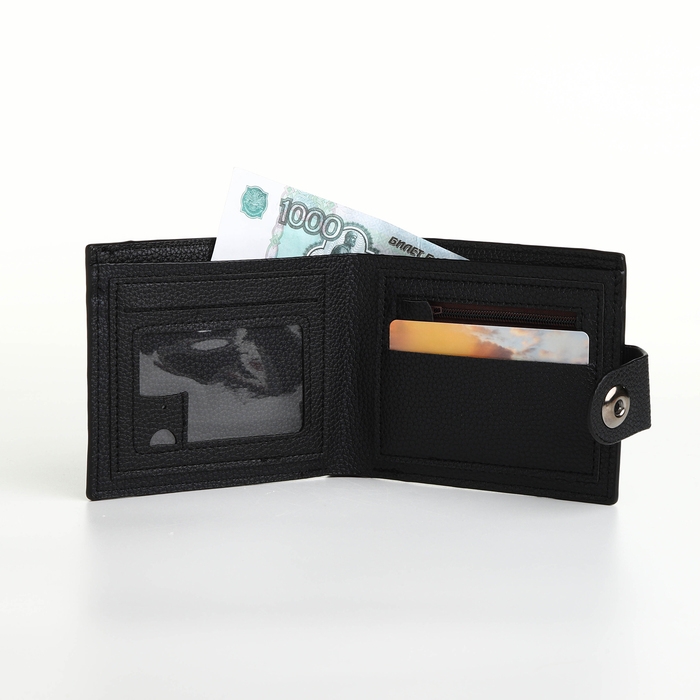 Портмоне мужское на магните, отдел для карт, монет, цвет чёрный