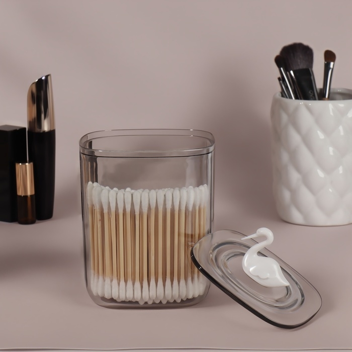 Эстетичный пластиковый органайзер для хранения ватных палочек, дисков или других маленьких вещей. Идеально подойдет к любому интерьеру, а также станет любимым предметом декора.