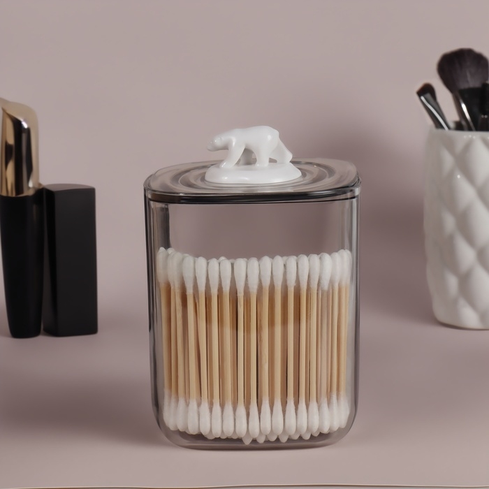 Эстетичный пластиковый органайзер для хранения ватных палочек, дисков или других маленьких вещей. Идеально подойдет к любому интерьеру, а также станет любимым предметом декора.
