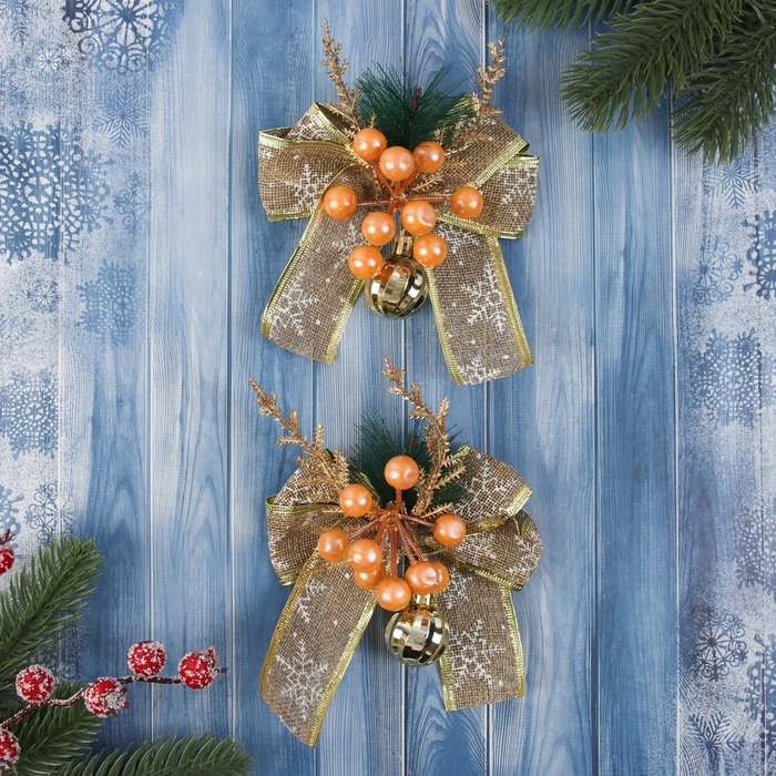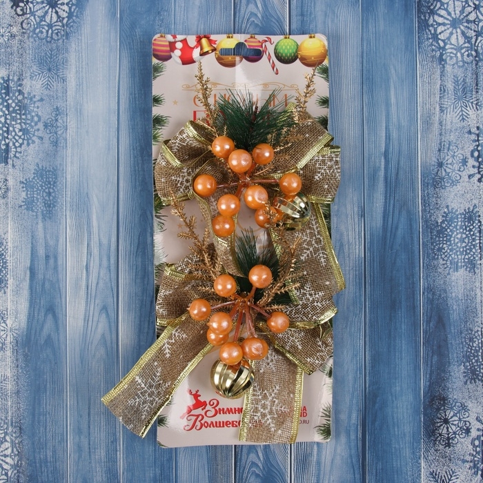 Украшение ёлочное "Композиция на бантике" (набор 2 шт ) ягодки, 13х15 см