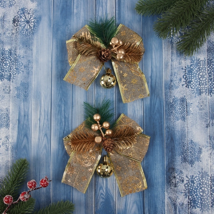 Украшение ёлочное "Композиция на бантике" (набор 2 шт ) шарик, 12х15 см