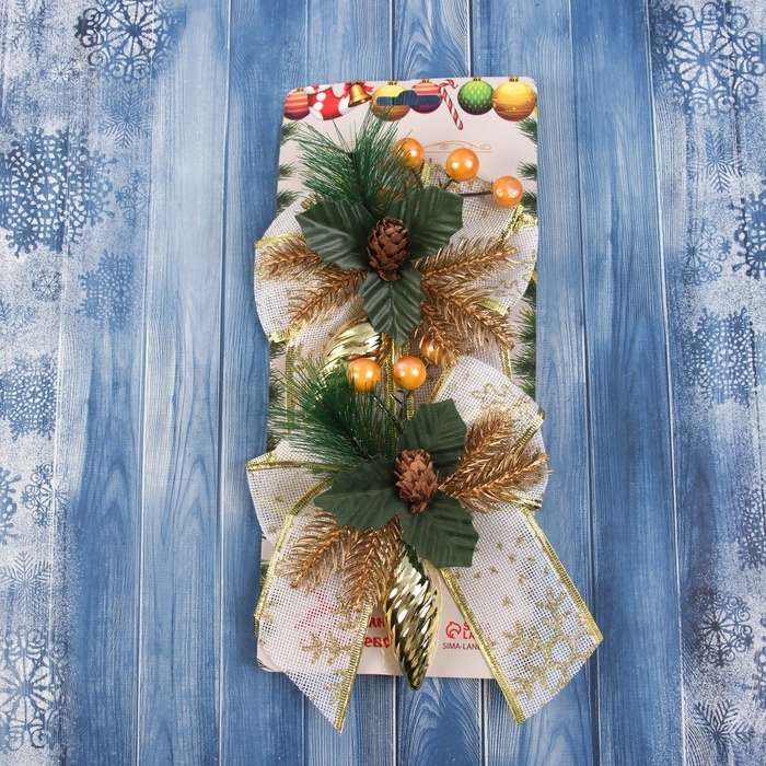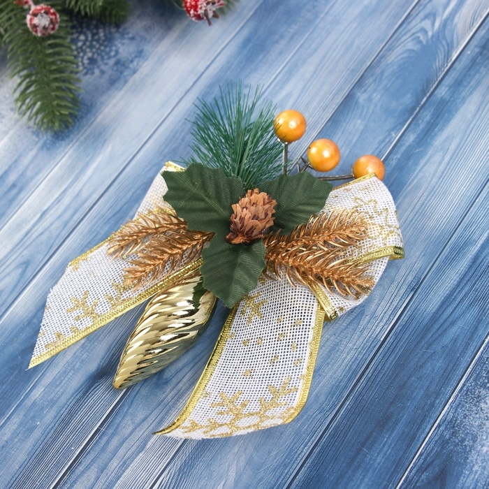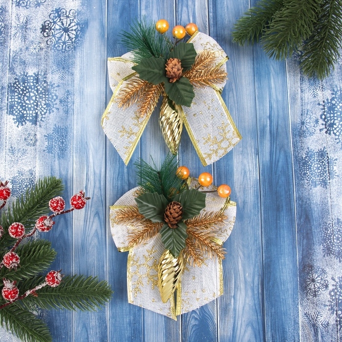 Украшение ёлочное "Композиция на бантике" (набор 2 шт ) сосулька с ягодками, 12х15 см