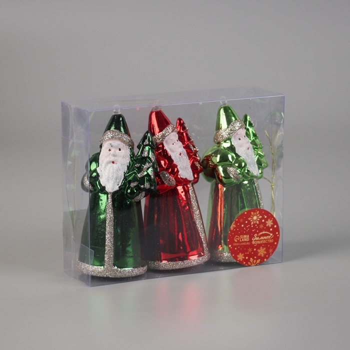 Украшение ёлочное "Дед Мороз колор" (набор 3 шт) 12х5,5 см, красный зелёный