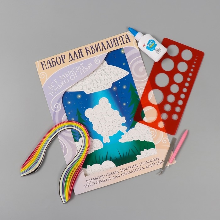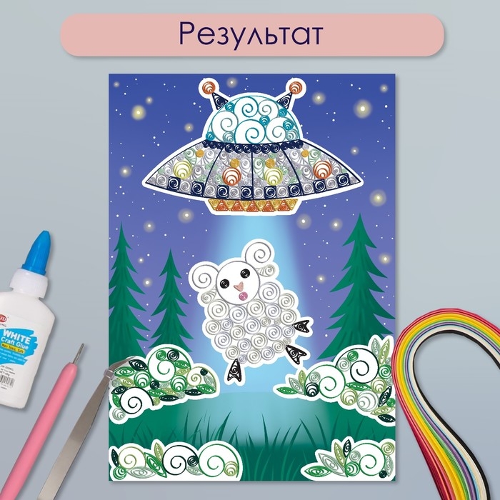 Набор для квиллинга 170 полосок с инструментами "Инопланетная тарелка и овечка" 25х33,7 см 1050101