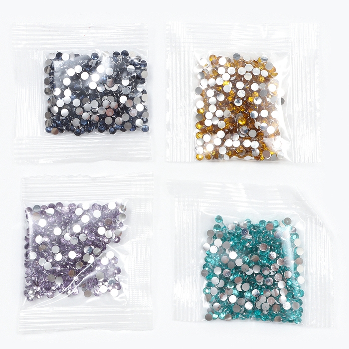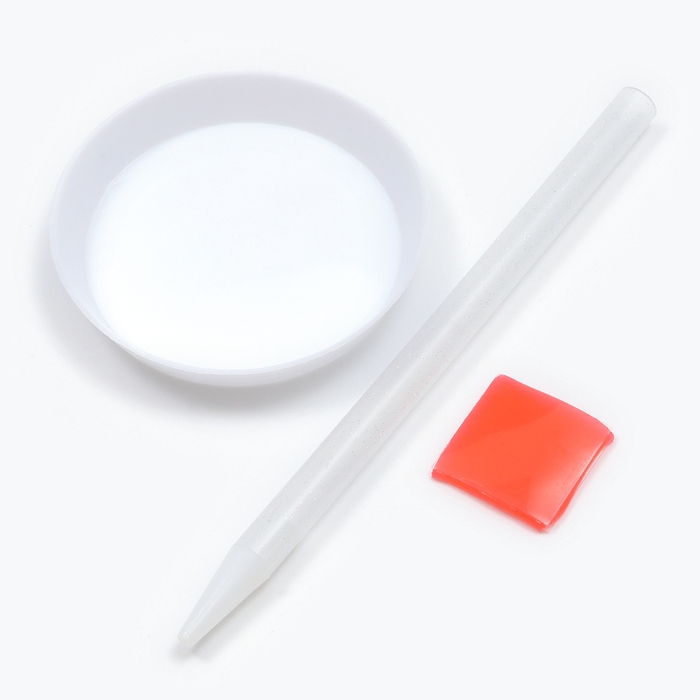 - Из пакетика с номером, который соответствует схеме, отсыпьте в ёмкость немного страз.