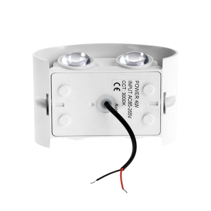 Светильник фасадный «Полусфера», FSD-073, 4 Вт, 3000К, 2 луча, IP65, 220 В, пластик, белый 1008420