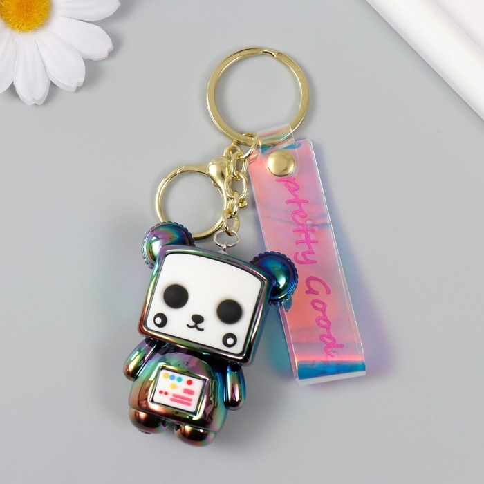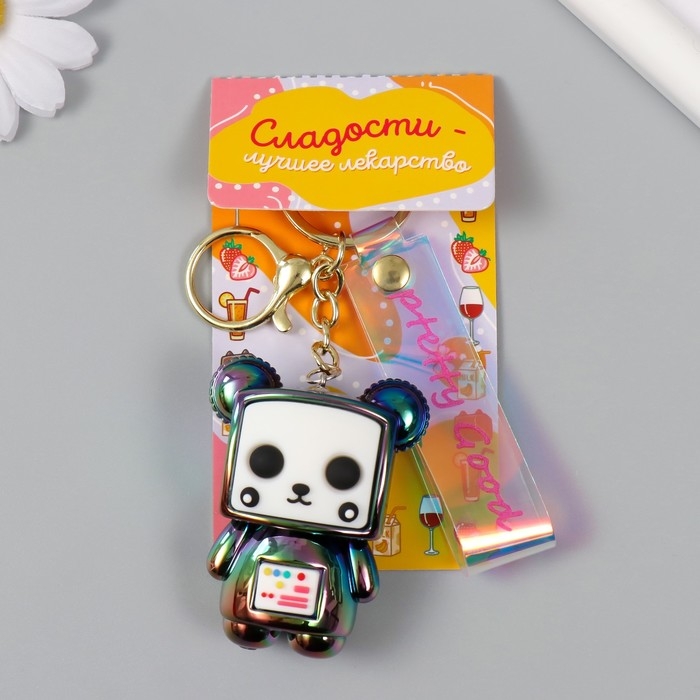 Брелок пластик, резина с карабином, ремешком "Медведь-робот" бензиновый 2,7х4,5х6 см