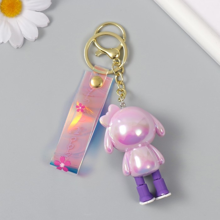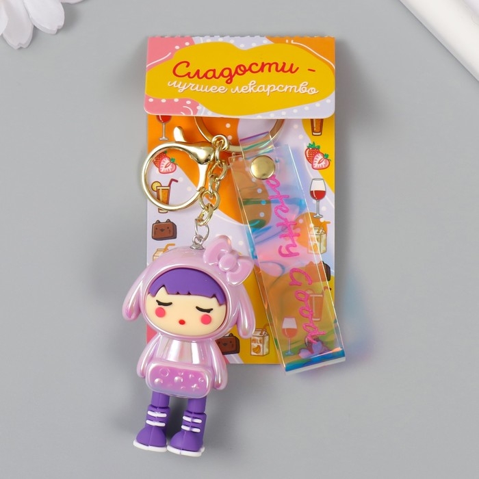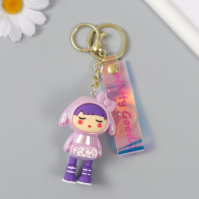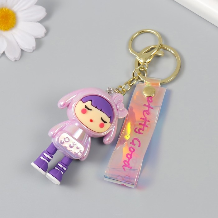 Брелок пластик, резина с карабином, ремешком "Девочка в розовом" 3х4,2х7 см