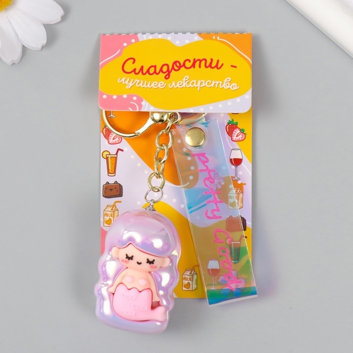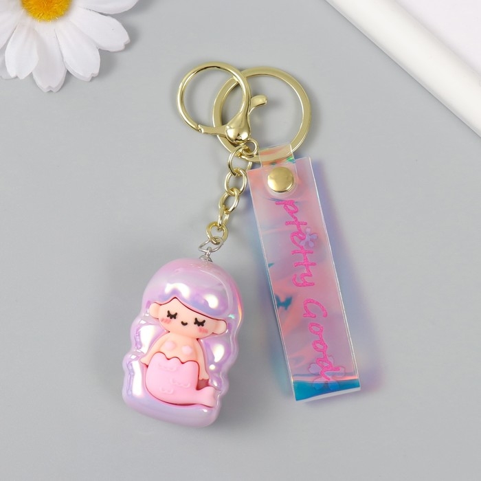 Брелок пластик, резина с карабином, ремешком "Русалочка" розовая 3х3,5х5 см