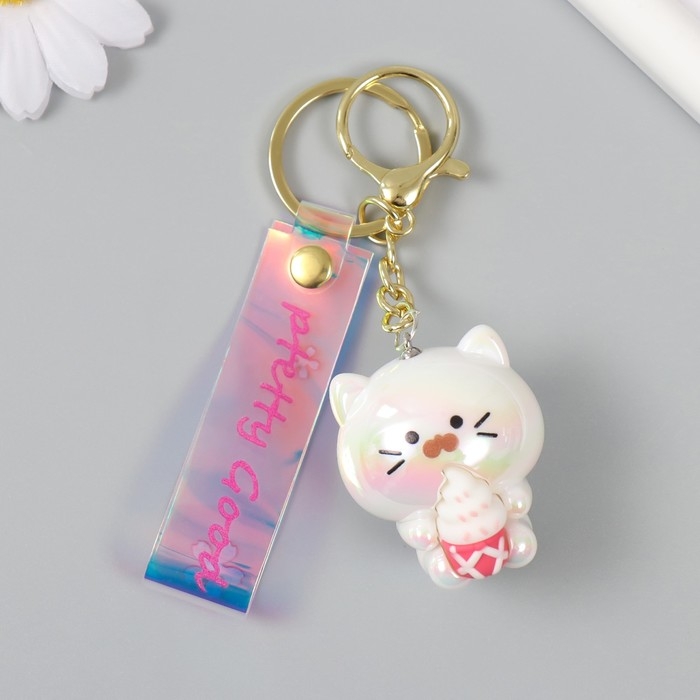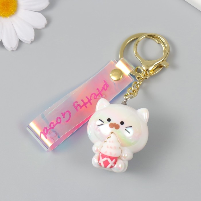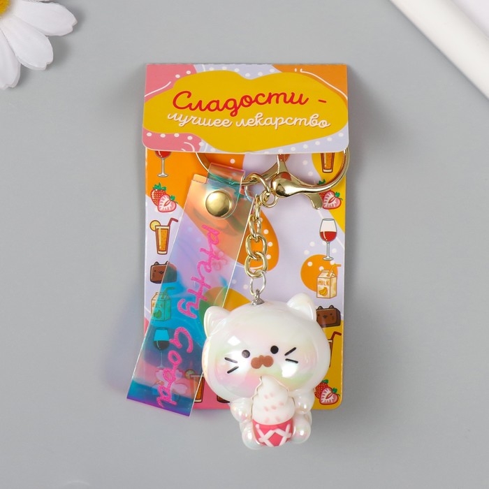Брелок пластик, резина с карабином, ремешком "Котёнок с мороженым" 3,5х4х4,2 см