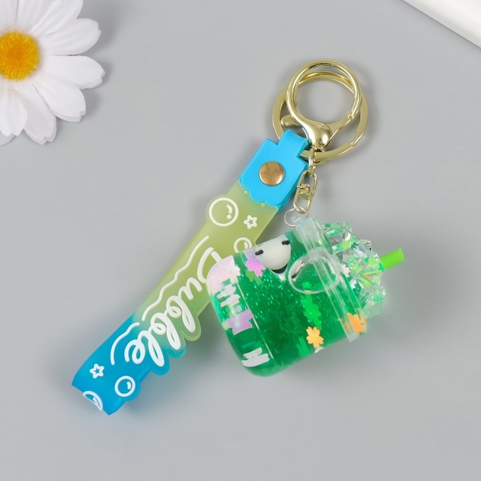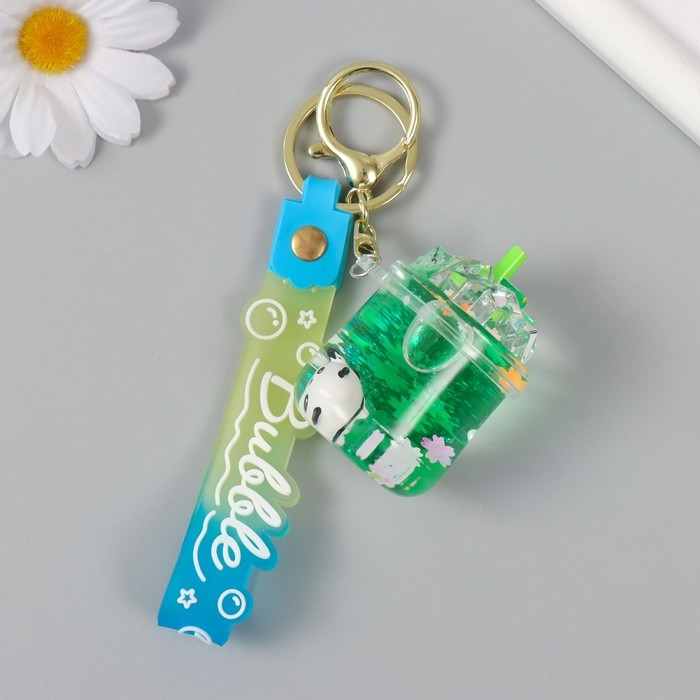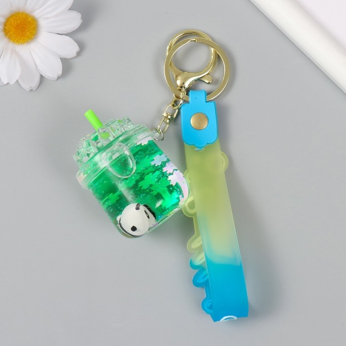 Брелок пластик с карабином, ремешком "Панда в лимонаде" водный с декором 4х4х6 см