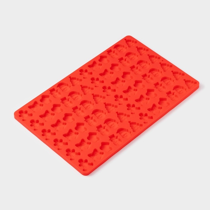 Форма для мармелада Доляна «Новогоднее настроение», силикон, 72 ячейки, 29×18×0,6 см , цвет красный