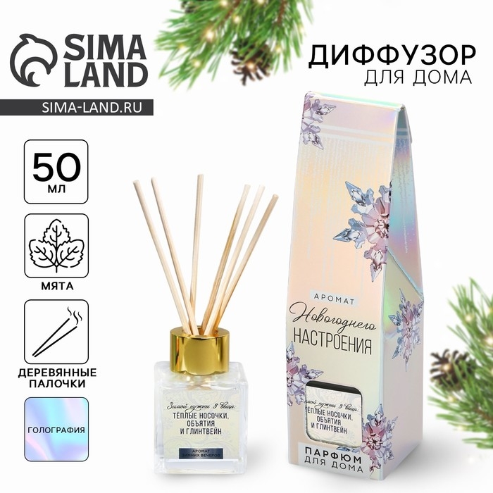 Аромадиффузор ароматический палочки на Новый год «Новогодняя коллекция: Зимние морозы», аромат мята, 50 мл