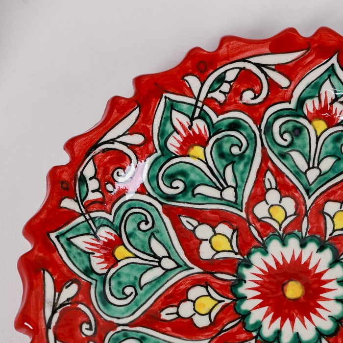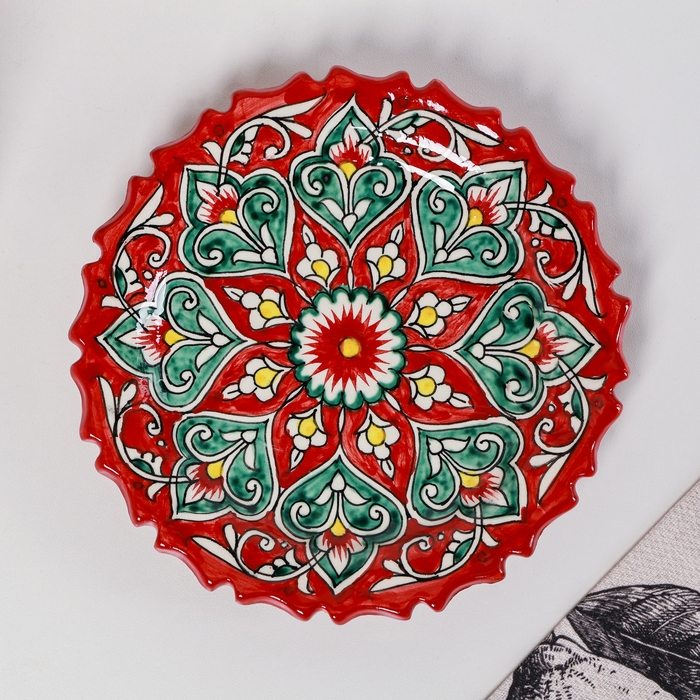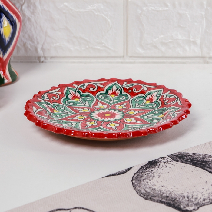 Тарелка Риштанская Керамика "Узоры", красная, 17 см, рифлёная