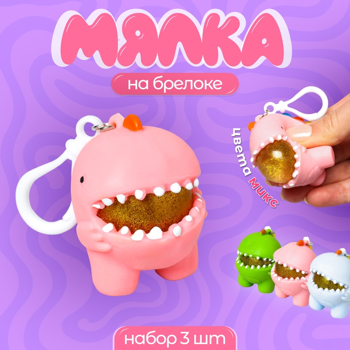 Мялка «Зубастый чудик» на брелоке, набор 3 штуки, цвет МИКС