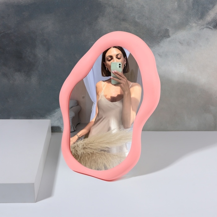 Дизайн зеркала выполнен в форме волны, что придает ему не только уникальный вид, но и создает атмосферу легкости и свежести. Розовый пластиковый корпус делает это зеркало ярким акцентом в интерьере, добавляя нотку игривости и элегантности. Такую модель оценят как молодые модницы, так и все, кто ценит красивые вещи в быту.