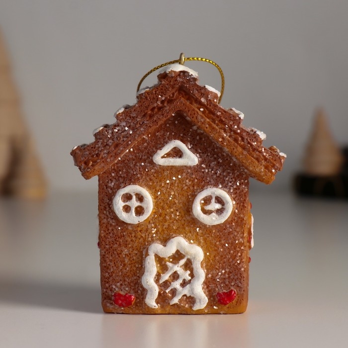 Сувенир полистоун подвеска "Пряничный домик с белой глазурью" 4,5х7х8 см