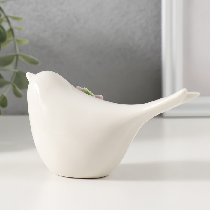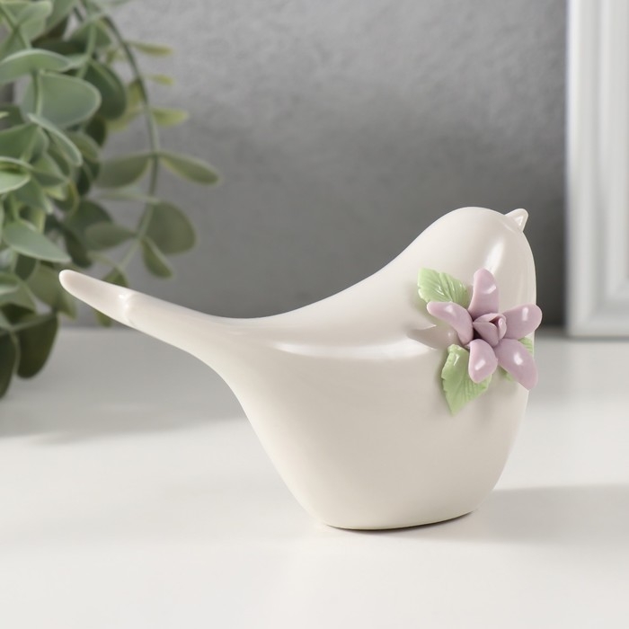 Сувенир керамика "Птичка белая с сиреневым цветком" 12,4х5х6,7 см