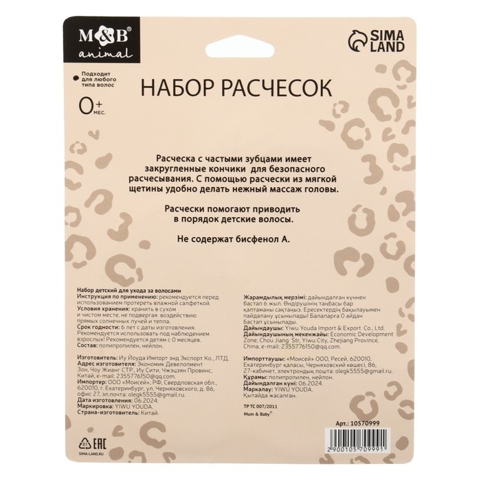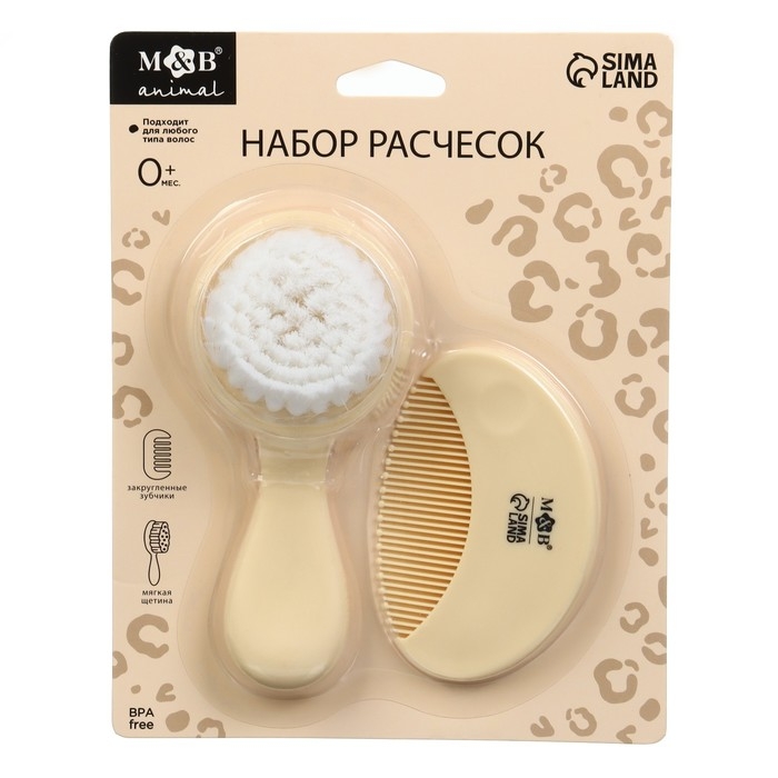 Набор для ухода за волосами «Леопард» (щетка+ расческа), цвет бежевый