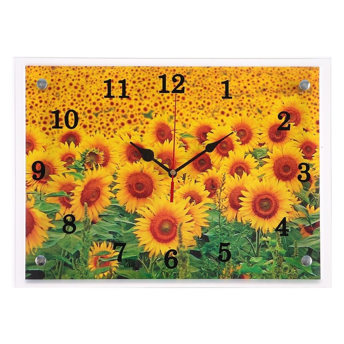 Часы-картина настенные, интерьерные "Подсолнухи", бесшумные, 25 х 35 см