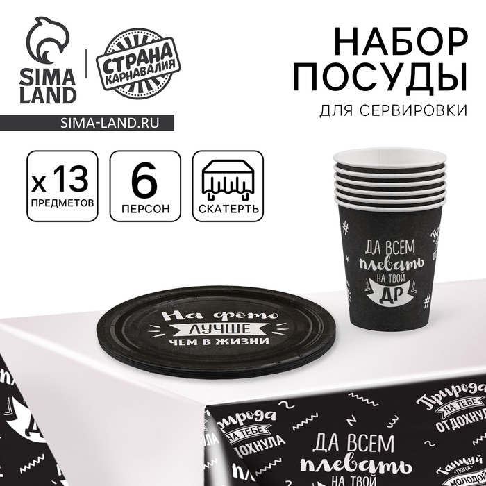 Набор бумажной посуды "Оскоррбительный!", 6 тарелок,6 стаканов, скатерть