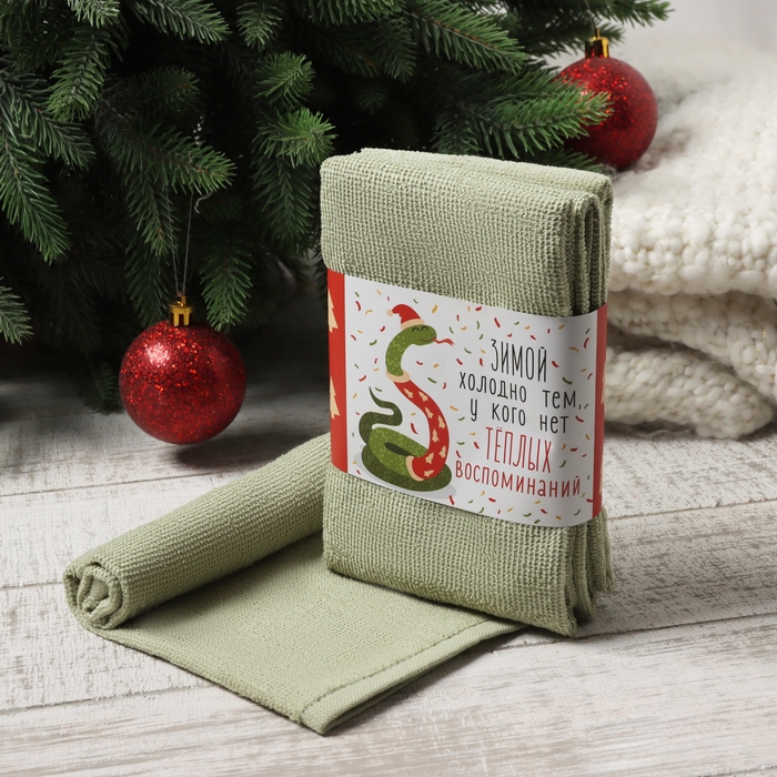 Набор махровых полотенец Этель "Праздничная змея" 30х30 см - 3 шт, 340 г/м2, 100% хлопок