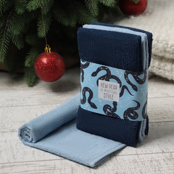 Набор махровых полотенец Этель "Звёздные змеи" 30х30 см - 3 шт, 340 г/м2, 100% хлопок