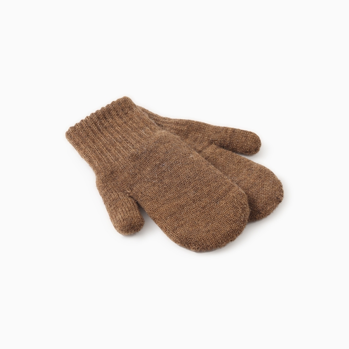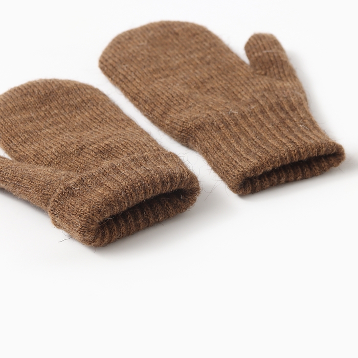 Варежки детские из монгольская шерсти, цвет коричневый, р-р 16