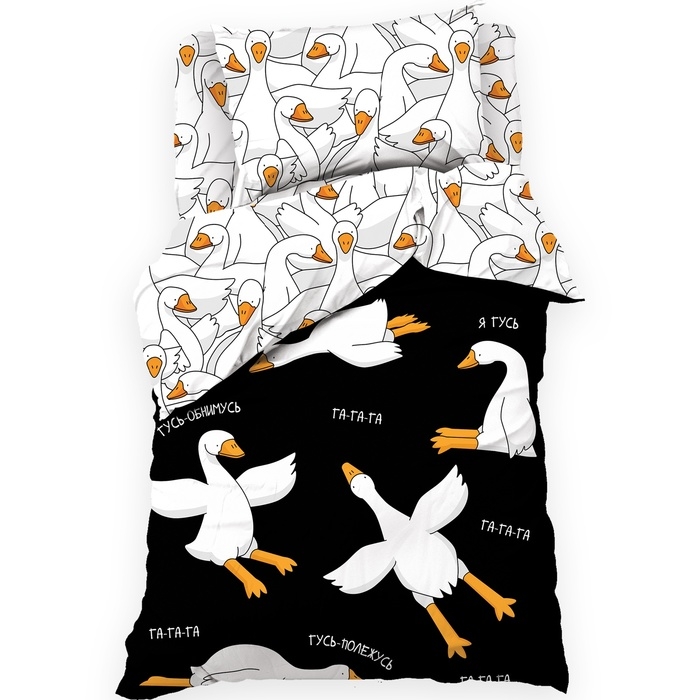 Постельное бельё Этель 1,5 сп Гусь-обнимусь 143х215 см, 150х214 см, 50х70 см -1 шт, 100% хл, бязь