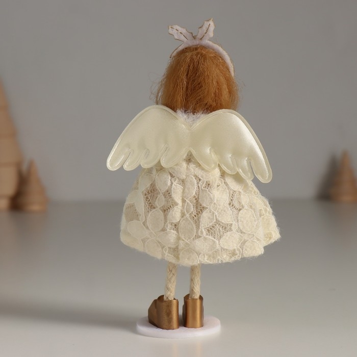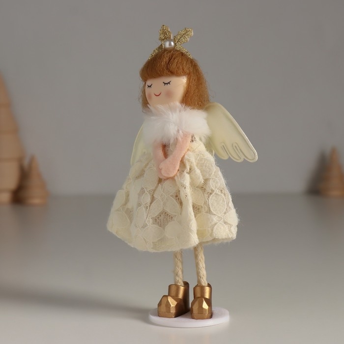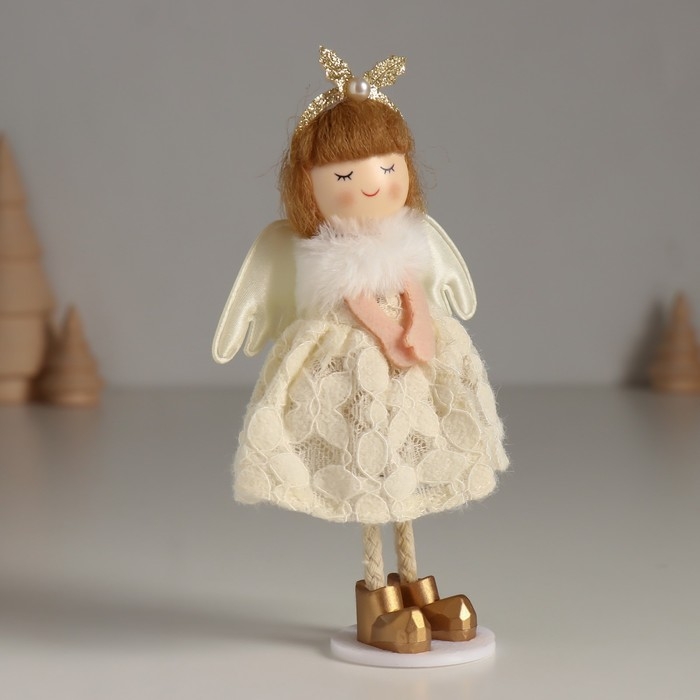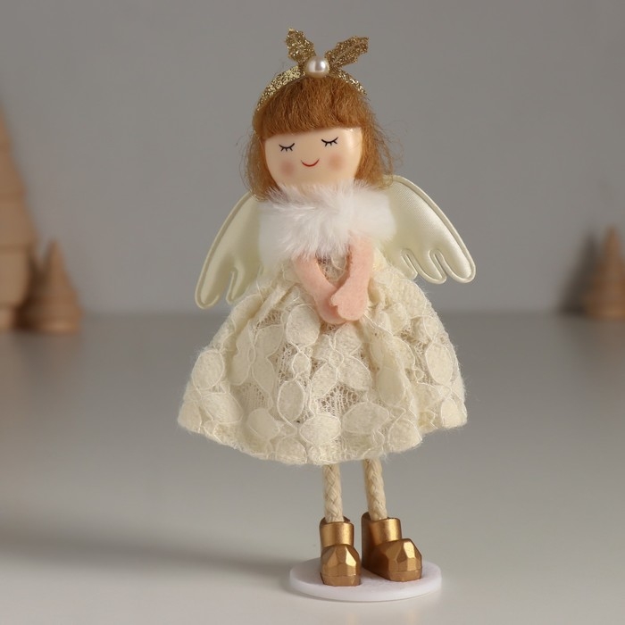 Кукла интерьерная "Ангелочек в белом платье с цветочками и пушистым воротником" 4,5х8х15 см 10471